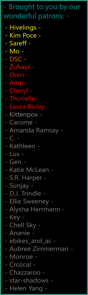 Well, they’re making progress, at least. Aspen and the friend discussing what happened was…. something. I imagine things are gonna be patchy there for a bit. Other than that yeah glad to see the ship being explored, and Reimann’s arm is an interesting development I did not foresee.