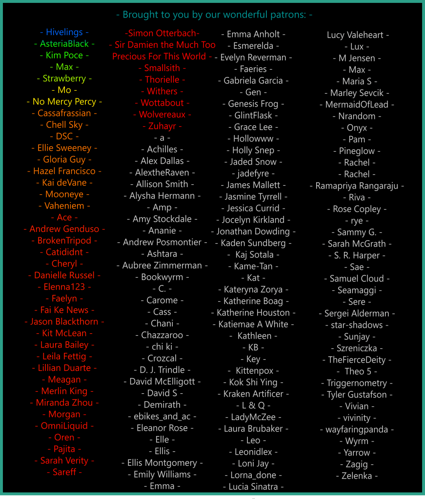 “Alright then. Celi, as our doctor, you’re the closest thing we have to a forensics expert. You’re in charge of investigating this scene. Aspen, Heli, assist Celi. Sam, with me; according to the computer our remaining Friend is still in the medbay and the others are in their habitation ring, and I’ve just locked them all in. We’re going to head there and conduct a thorough search. Sunset, swing by the medbay and confirm the Friend’s location, then come and join us.”