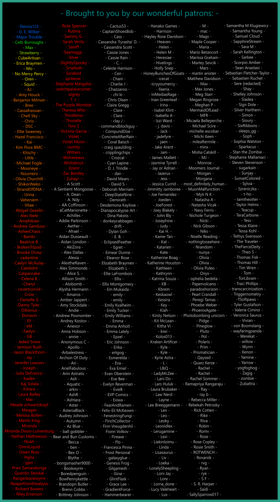 the updates usually come out right when I’m getting off work and am in retail fight or flight, which means I leave paranoid comments, which means I am endlessly grateful for people explaining stuff to me (SO genuine it feels like I get class discussion)