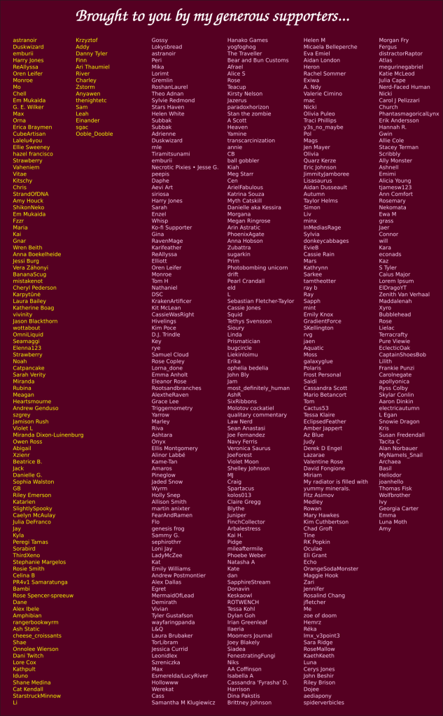 Saro was not whispering. “Oh, you want her to fill in the paperwork? You’re worried about getting in trouble? About us losing our jobs and being too stupid to get other ones? It’s just a risk we’ll have to take in order to help – what’s your name, kid?”